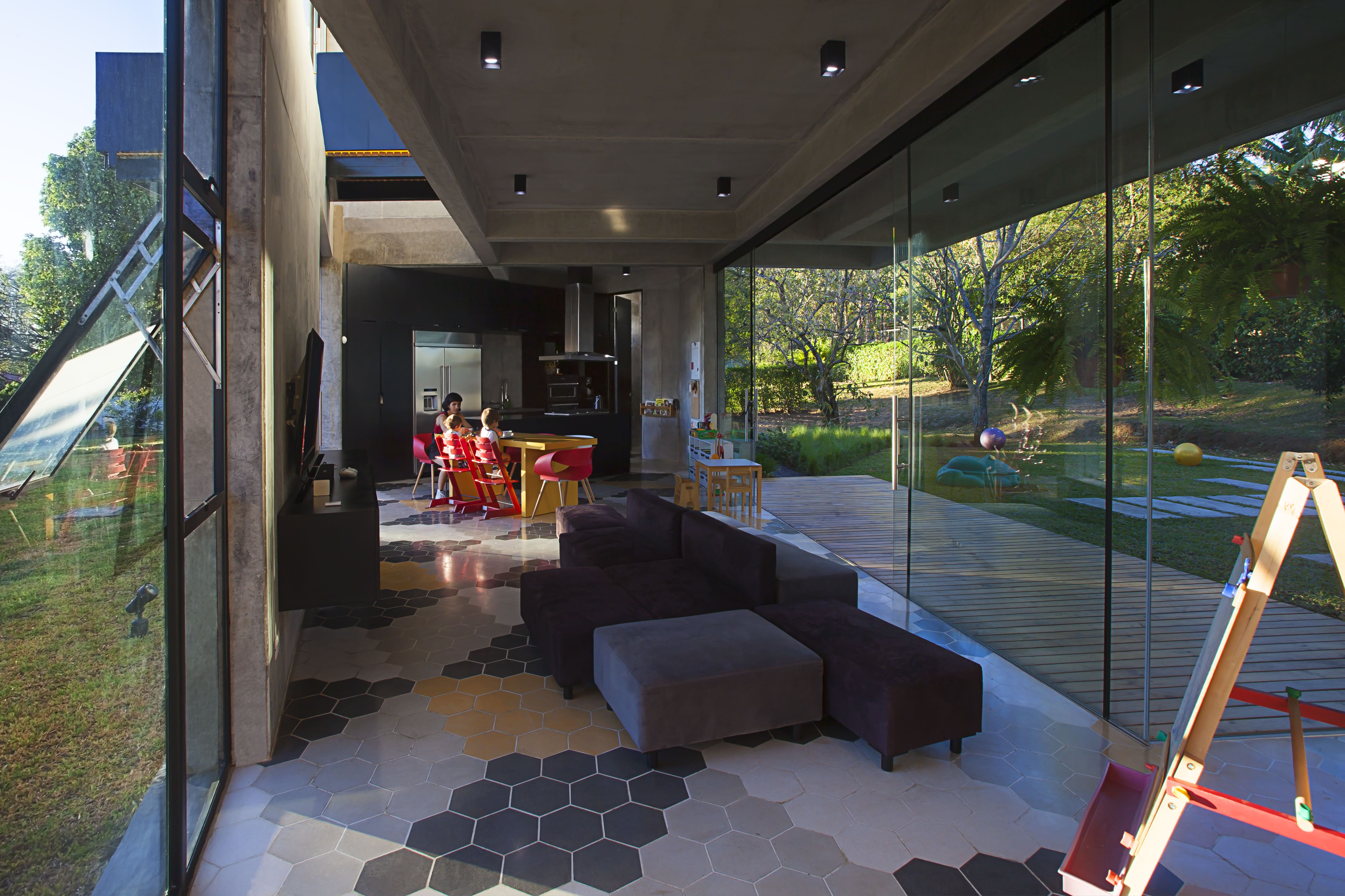 This project is constructed under a series of requirements according to the guidelines given by the client in relation to establish privacy in its immediate surroundings, which is why the morphology responds to this intention and the residence is self-contained, turning into a broad inner courtyard and projecting to the environment via a diaphanous plastic, characterized by pure volumes and solid in its majority, that establishes an interplay of full and empty through the perforations that allow you to peek inside towards the interior of the building, always having gardens as visual end point of the different spaces.